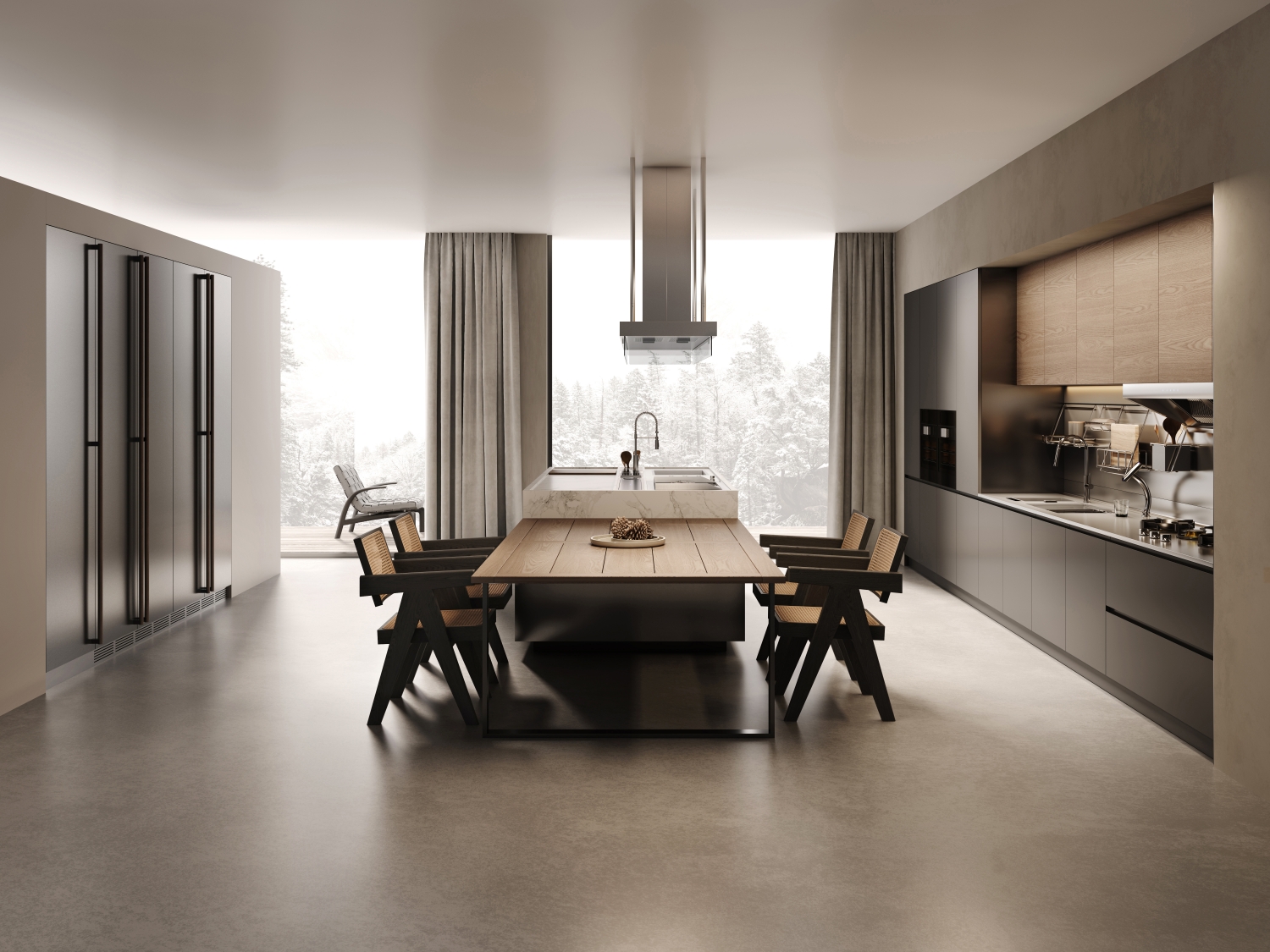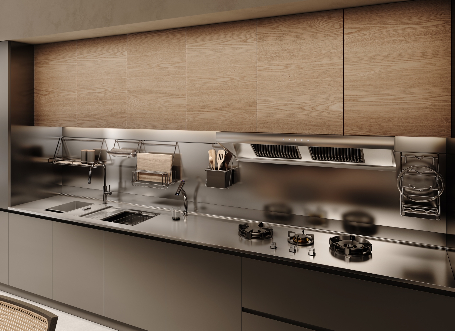 Clowzer「克洛茲」 追尋去繁就簡卻不失有序規(guī)整的設(shè)計旋律,承載家庭的溫情紐帶。餐廚一體化的簡潔空間實現(xiàn)了廚房的實用性與設(shè)計藝術(shù)性的平衡,恰到好處的低調(diào)與高級,傾注著鋼材、石材、木材的多重碰撞而帶來的無限可能。